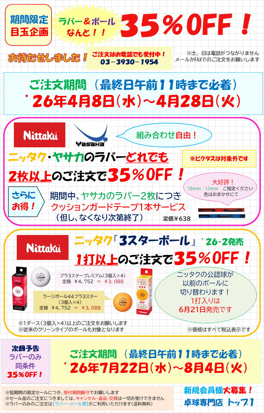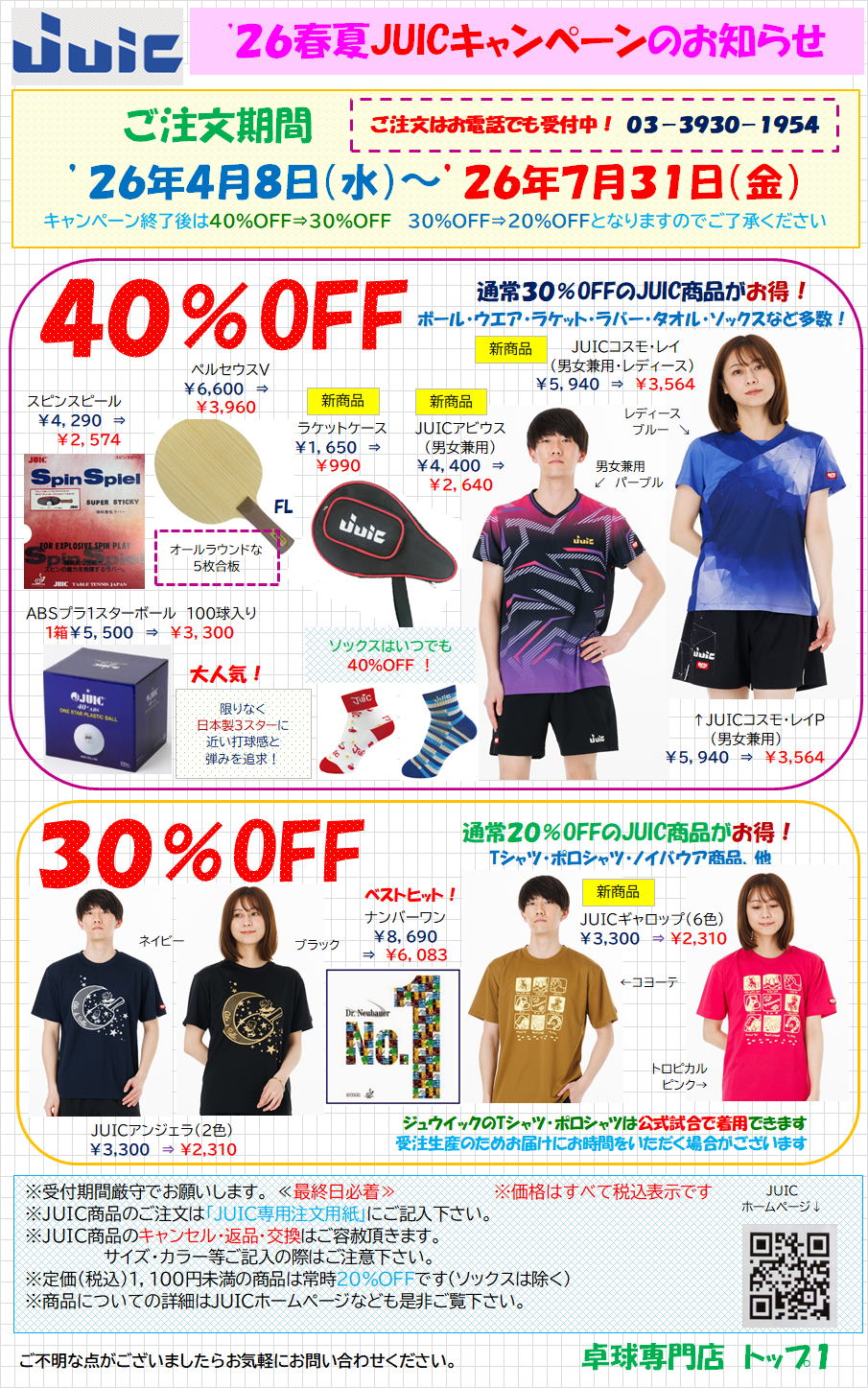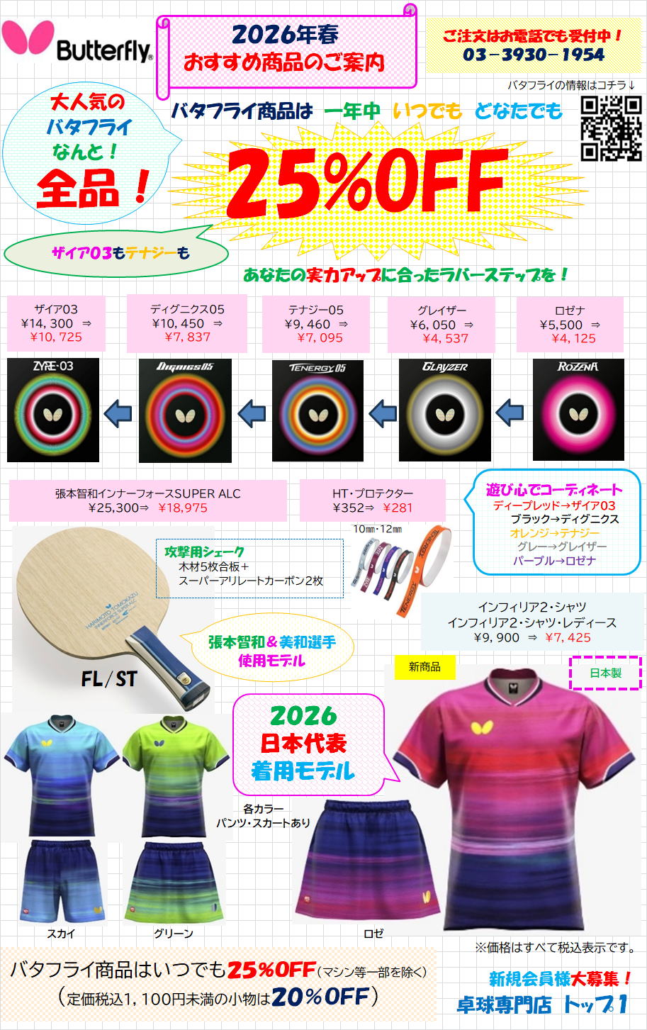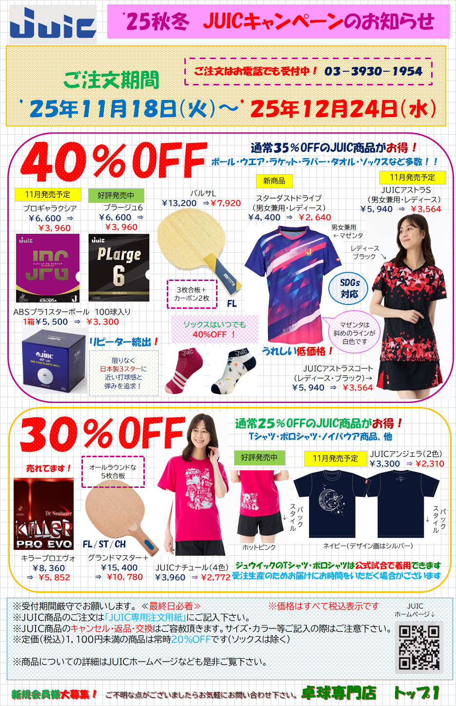 ショップでは、いつでもほとんどのメーカーの卓球用品を30%引きで販売しております。詳しくはショップをご覧ください。