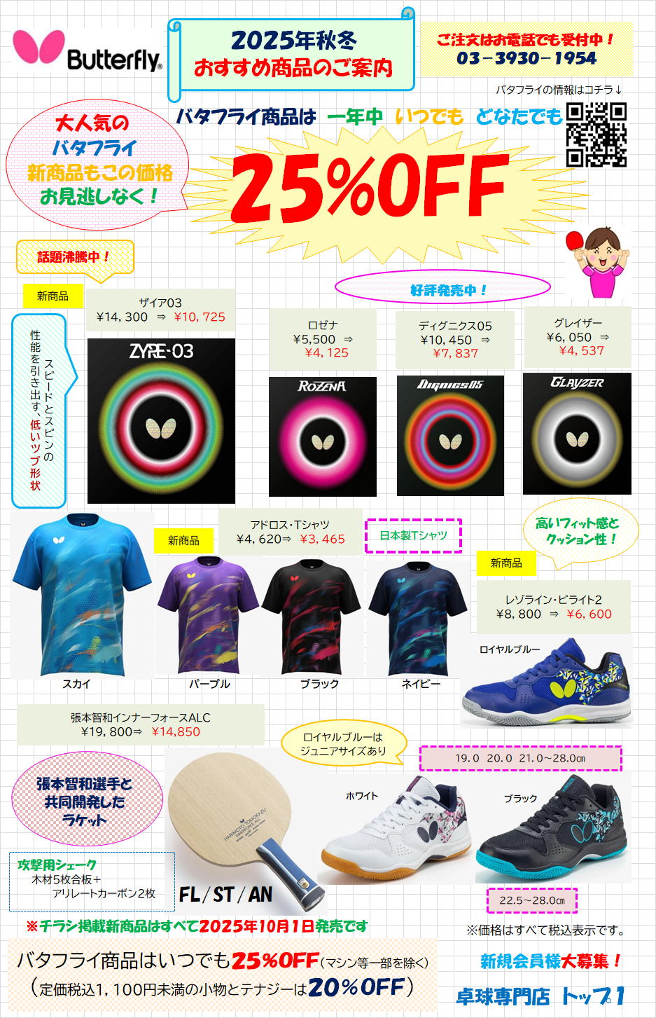 ようこそ、卓球専門店トップ1のホームページへ。
